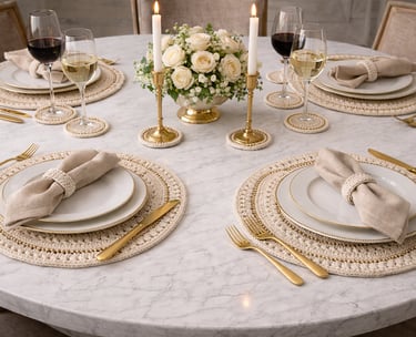 Lugares de mesa pensados como rituais individuais para quem escolhe viver com intenção.